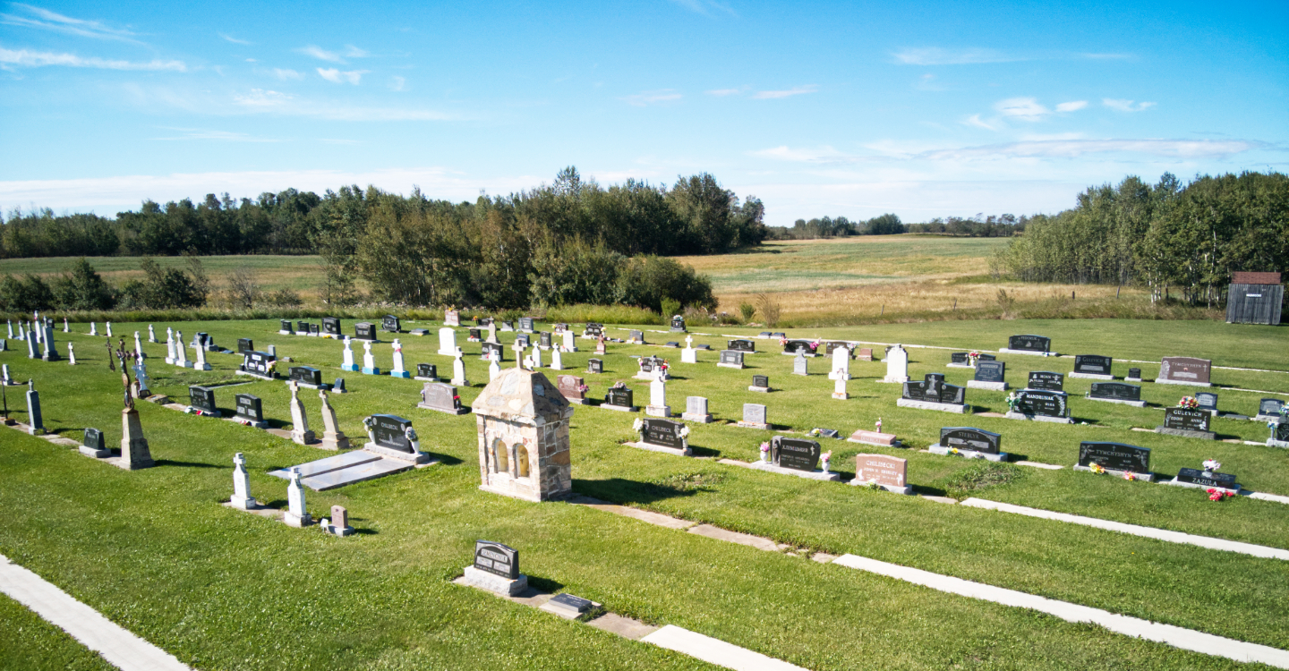 This church is often referred to as “Moskalyk’s”, after the pioneering family whose quarter section was subdivided to create a churchyard. The Basilian Fathers provided pastoral care in the district, with the founder of the mission, Fr. Platonid Filas (1864–1930), travelling back and forth from the Order’s early mission to hold services in people’s homes. The settlers soon decided a proper place of worship was needed and erected a small chapel in 1904. This burned to the ground in 1924 while the present church was being built.