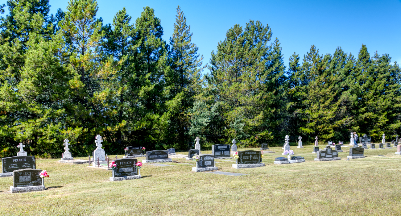 Land for a cemetery was donated in 1934 by Yakym and Victoria Mernonenko just west of the site of the future church, on the north side of TWP 585, at SW 28-58-13 W4. The first interment was that of Maricia Shysh in 1934.
